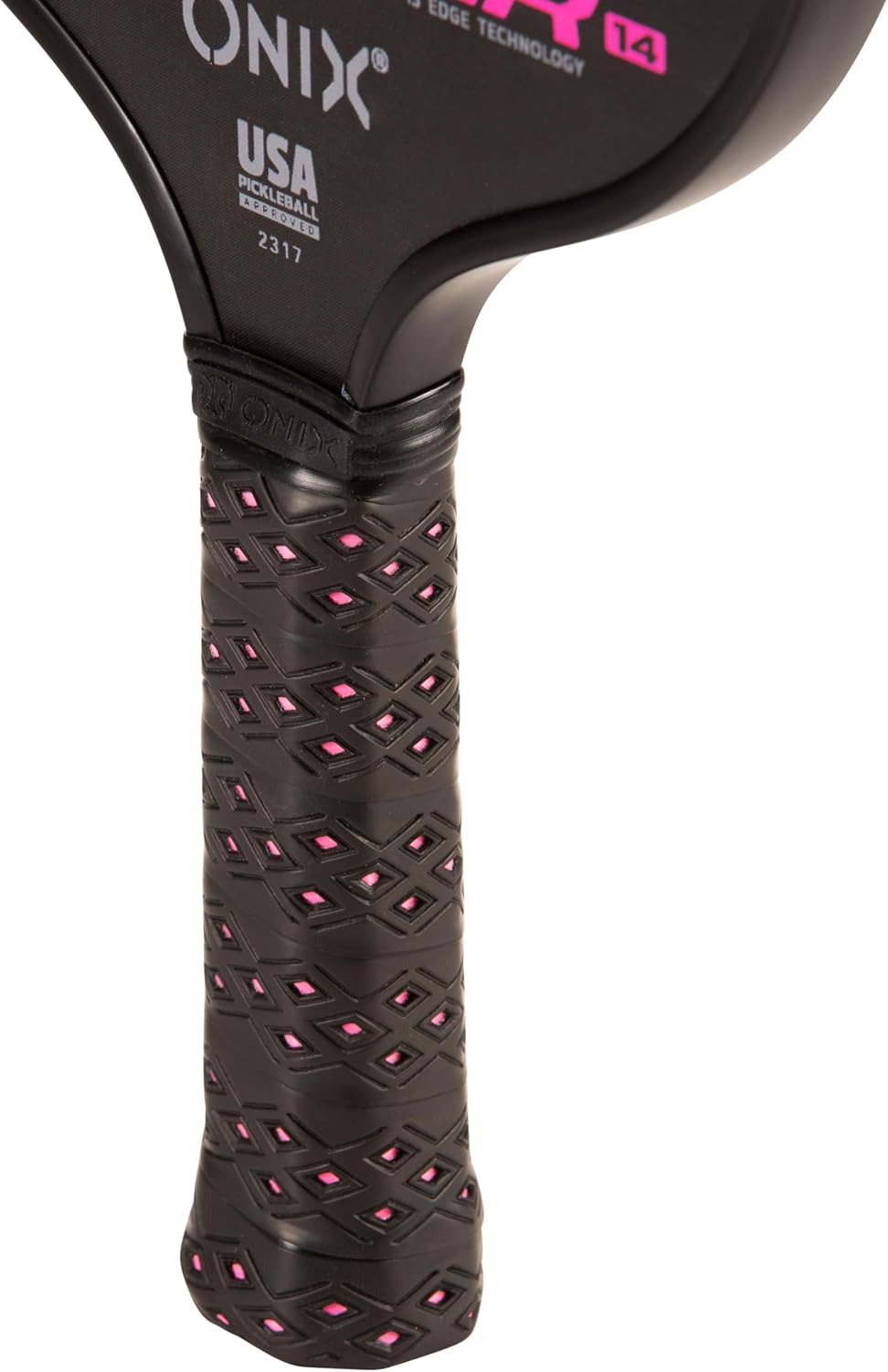 Introducing the all-new Evoke Premier Raw Carbon Paddle from ONIX Pickleball, this raw carbon fiber surface texture increases traction on the pickleball for maximum spin and control without sacrificing pop and power. The polypropylene core provides a lightweight and durable paddle with excellent all-around maneuverability. This lightweight pickleball paddle is also constructed with a non-slip, comfort grip that makes it easy to control on the court. These paddles are USA Pickleball (USAPA) approved for tournament play. A full edge guard provides added protection during aggressive play. Raise the level of your game. Play Your Best with ONIX!
